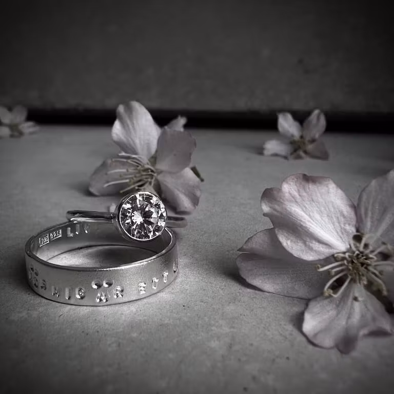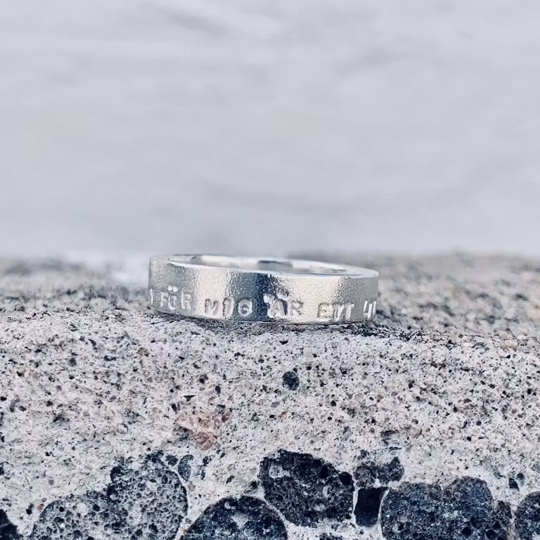 Silverring Ett LIV för mig är ett LIV med dig, 5 1 995 kr Förlovningsring/vigselring i silver. Storlek 17mm 18mm 19mm 20mm 21mm Lägg i varukorgen Dela Produktbeskrivning Recensioner Silverring med texten "ETT LIV FÖR MIG ÄR ETT LIV MED DIG"Går bra att beställa men finns ej på lager, utan behöver tillverkas. Leveranstid 2-3 veckor925 Sterling silverMattslipad ring5 mm bredTjocklek 1 mmPassar fint ihop med ringen "Enkelhetens lov"Hittar du inte din storlek? Kontakta [email protected] så ordnar vi det.Du kan få namn och datum stansade inuti ringen. Det medför en extra kostnad. För mer info kontakta [email protected] Ångrat köp går då inte att tillämpa.