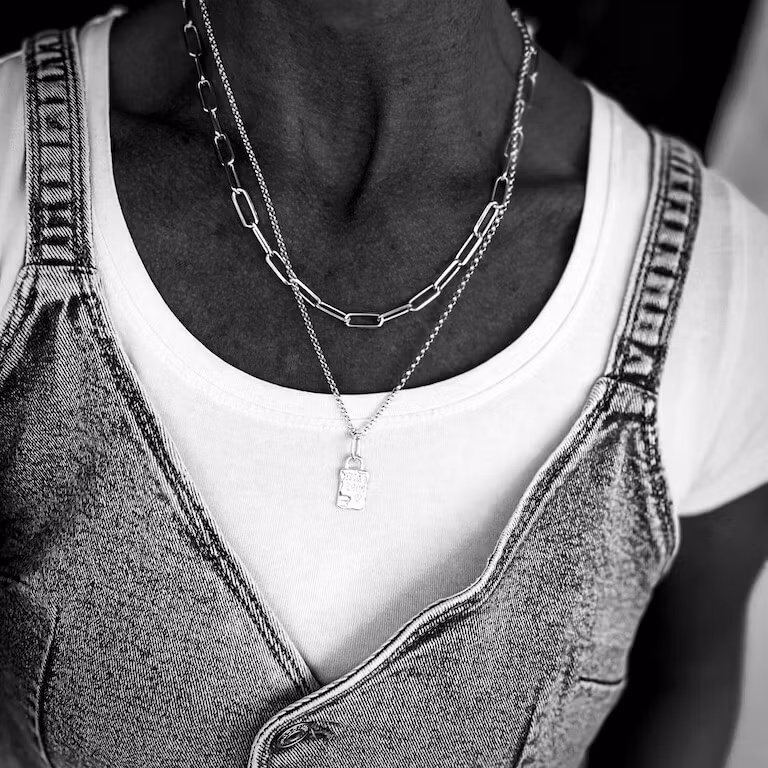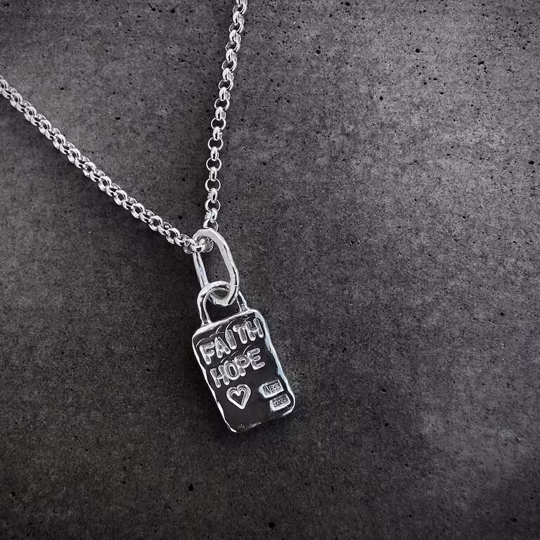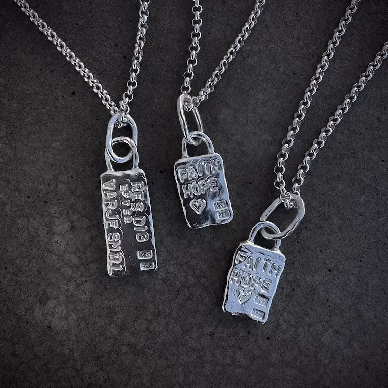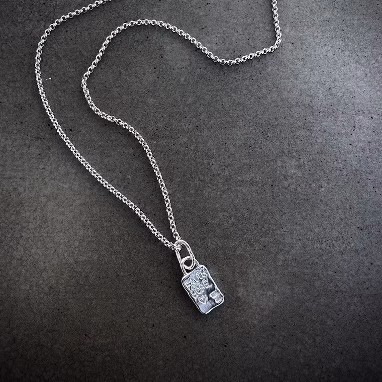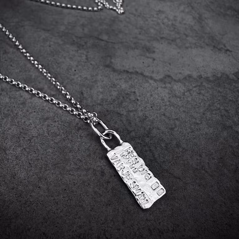 Personligt silverhalsband, i rå design, med ord att bära nära ditt hjärta varje dag. Passar både kvinnor och män. Halsbandet Danny Saucedo var först med att bära på Elle-galan -26