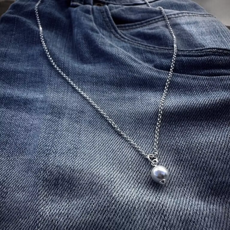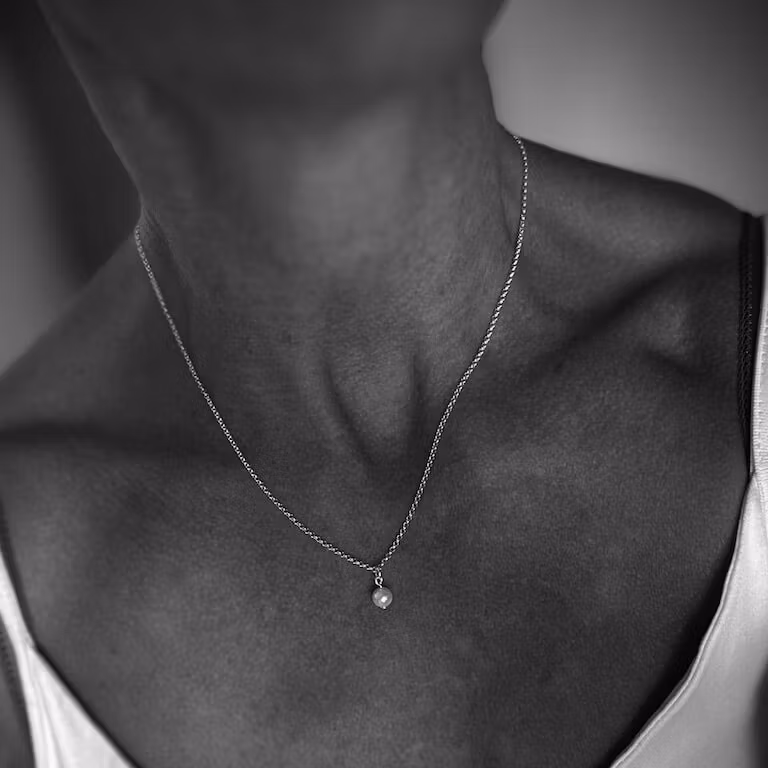 Enkelt silverhalsband med en vacker snäckskalspärla.